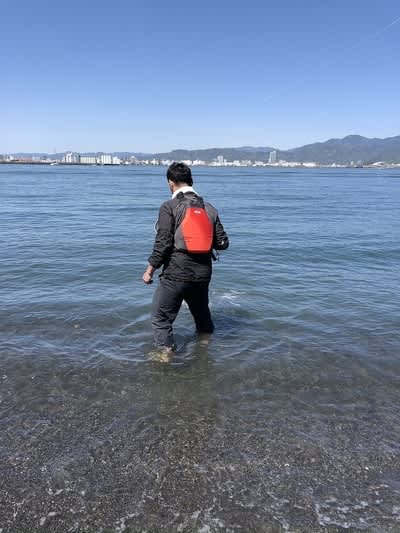 お魚釣りです。05:30に用宗海岸に行くもすごいうねりと濁りでこれでは釣りができません。