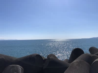 この地域は高い防波堤が無く、どこからでも海が見えます