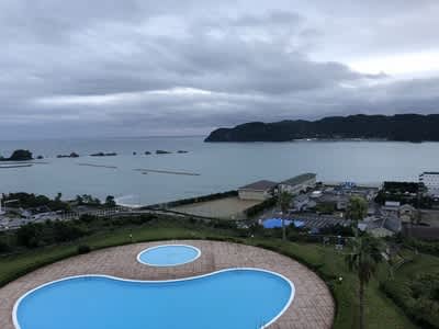 宿は本州最南端の串本のリゾートホテル。ちょっと古いんですが三ツ星ホテルだそうです。GOTOのおかげで庶民も泊まってよいようです。