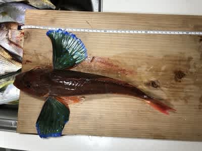 ぽつぽつとカンパチやホウボウを追加して私のほうにも大きなカンパチがかかってすごい引く