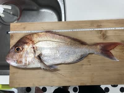 そうしましたら何もないところですがとても大きなマダイがヒット