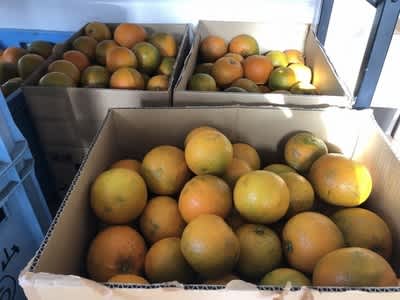 近所の橙の木に登ってチョキチョキと収穫していきます。