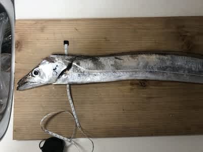 仕方なくタモには頭だけ入れて、しっぽを掴んで船に上げる。
