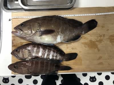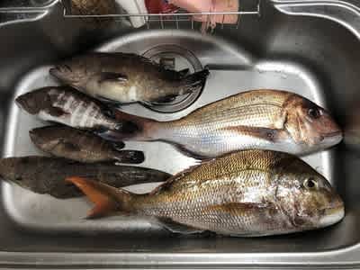 タロウさんに大きなマダイ、マハタ中、マハタ小が釣れます