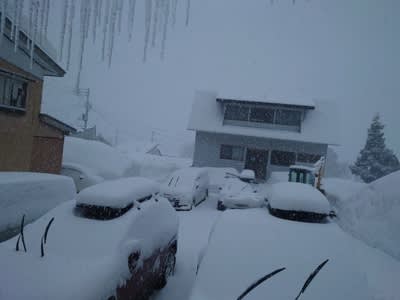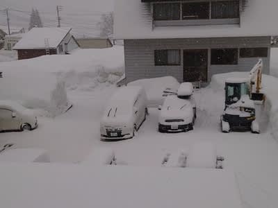 駐車場を雪かきして車を出します。見かけに反して暑いくらいです。