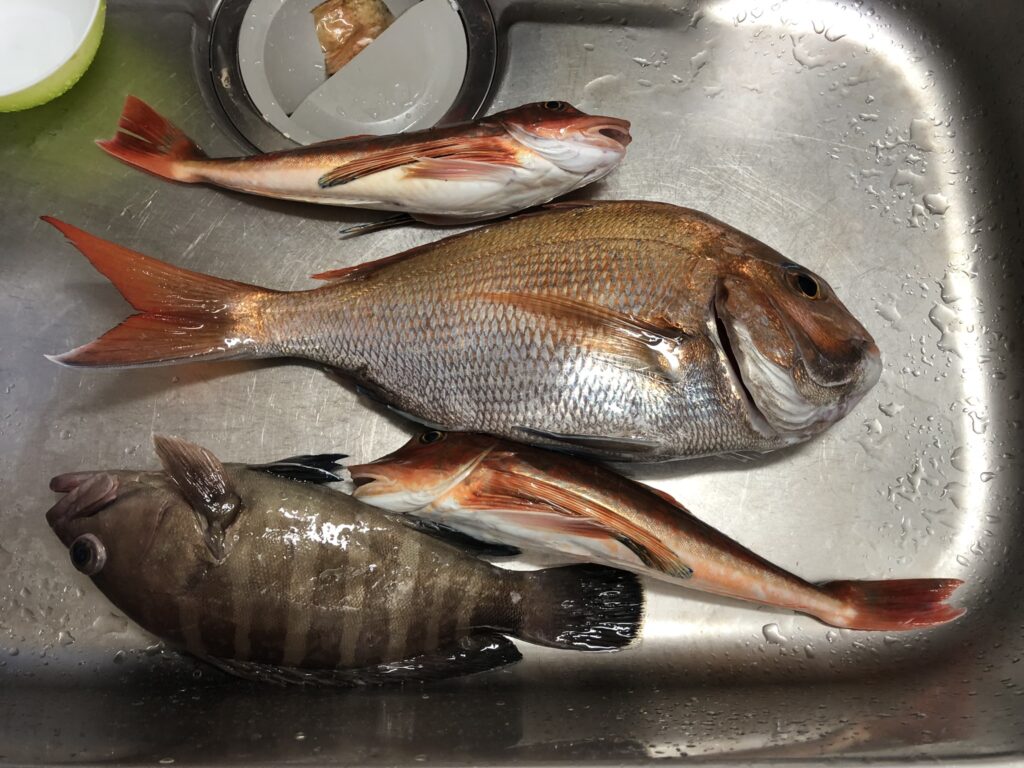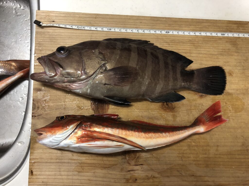 しばらくすると私のメタルジグにアタリ。食べごろのホウボウです。針を外しているうちに太郎さんのタイラバにも同じくホウボウ。
