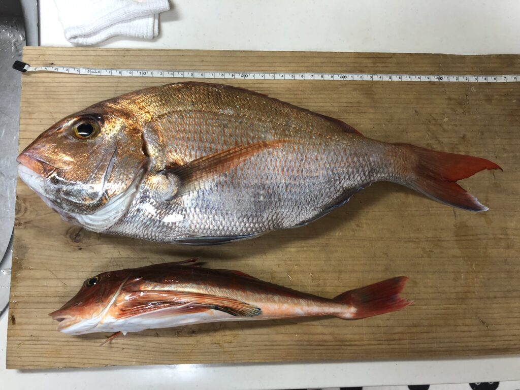 たまには深場にでもということで120mくらいを探っていると太郎さんのタイラバに45㎝のきれいなマダイ。身がパンパンです。