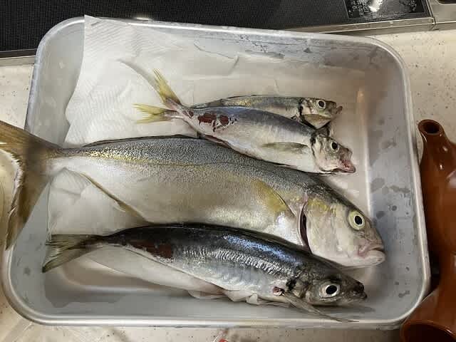 このままアジをいっぱい釣っておかずにしたいところでして、粘りますと今度はいいサイズのカマスが入れ食いです。