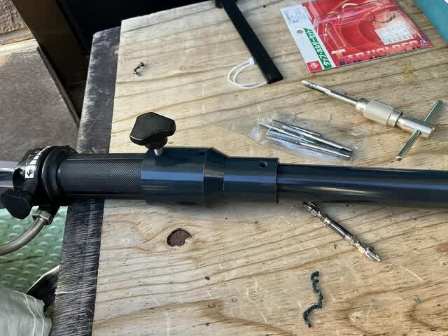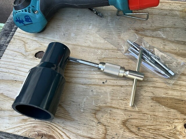 HI-VPパイプの40-20異径ソケットにタップでネジを切って、