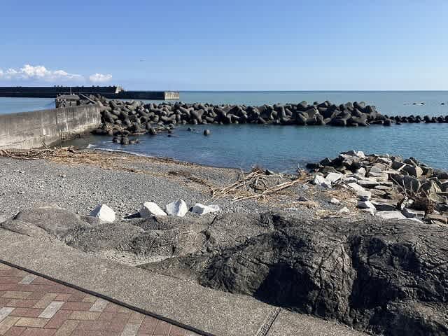 (半島)先端の海岸には多数の流木が打ち上げられています