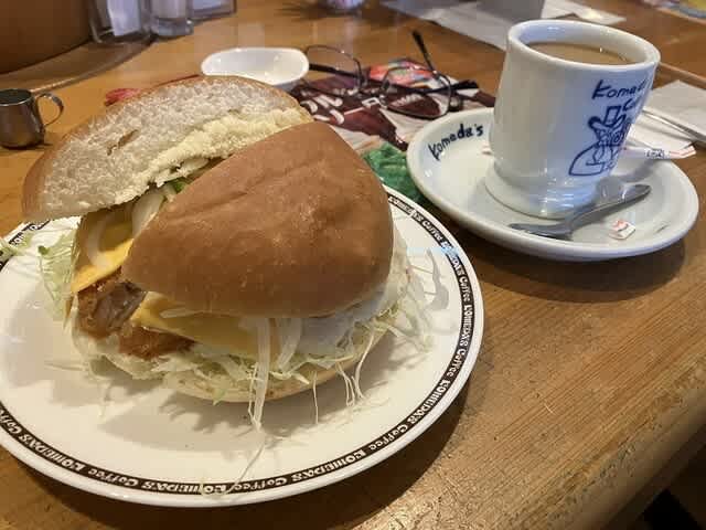 この大きなハンバーガーが食べたかったのですがコスパ悪い(590円+コーヒー500円)と思っている。