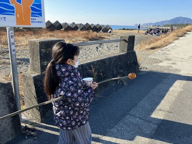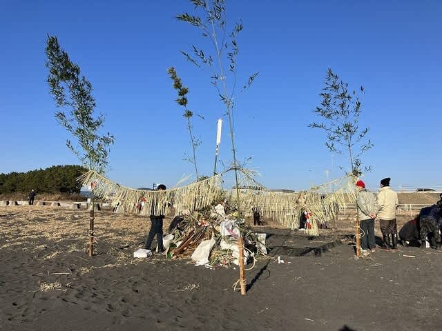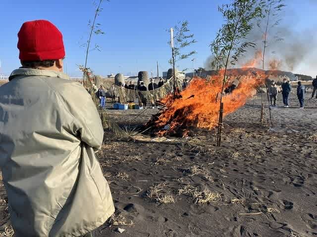 海岸に正月飾り等を積みまして焼きます。