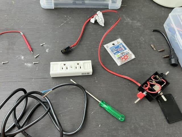何かいいアイデアはないかなぁと長年悩んでおりましたが、ホームセンターで「3ピンコンセント」を見てひらめきました。