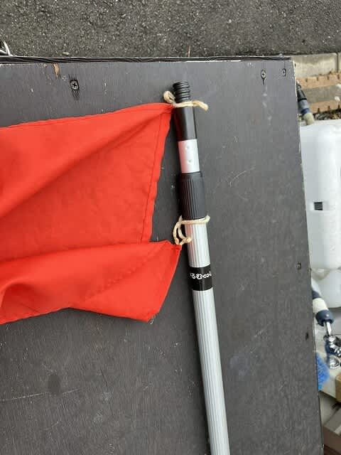 アルミ製で軽くて錆にも強いはずです。購入しました。旗をつけてみました。