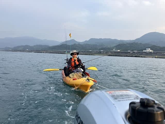 まだ雨の影響で濁りは強い。副船長は太郎さんです。