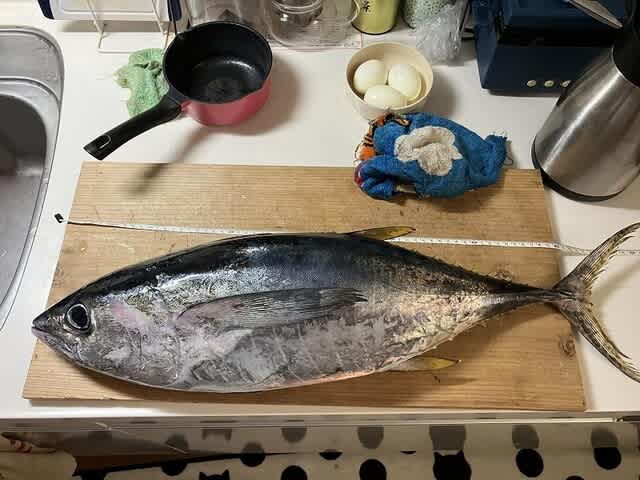 70㎝、5キロのキハダマグロです。クーラーに入りません。腰が抜けました。