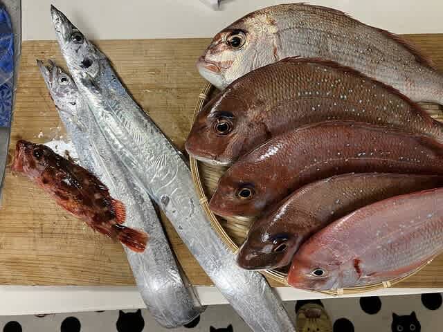 太郎さんもタチウオ、マダイ、カサゴと釣れます。