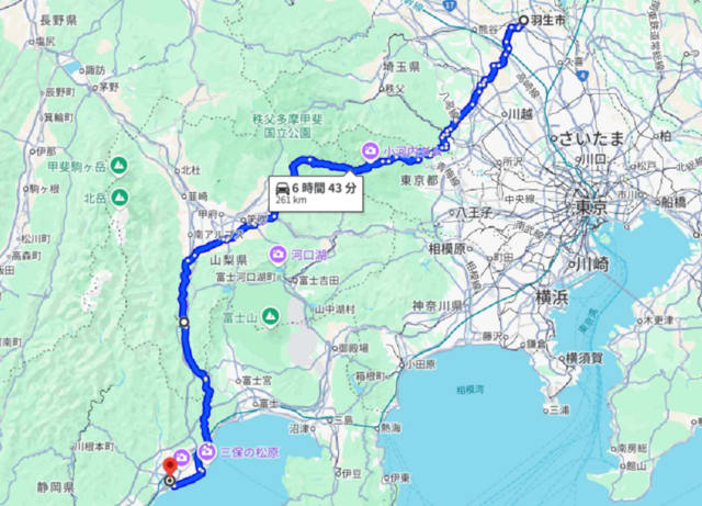 そうなると埼玉から甲府へ抜ける秩父経由か奥多摩経由である。