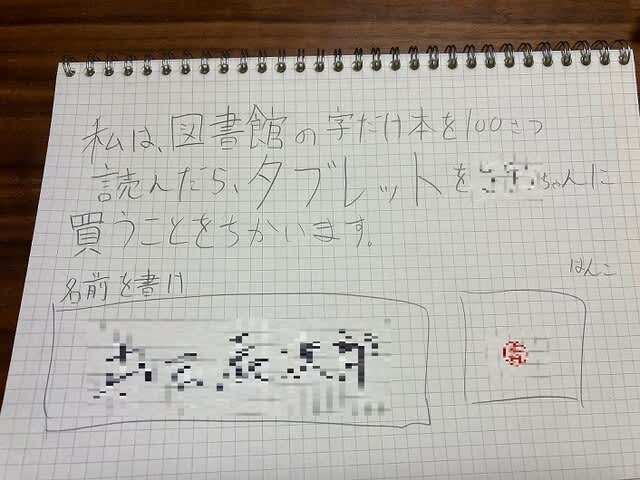6年生になったら「図書館の字だけの本」を100冊読むとiPadを買う約束をさせられる。