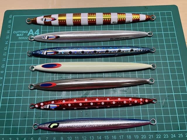 上から四つ目の200g。今後深場のパイロットジグとして活躍予定。