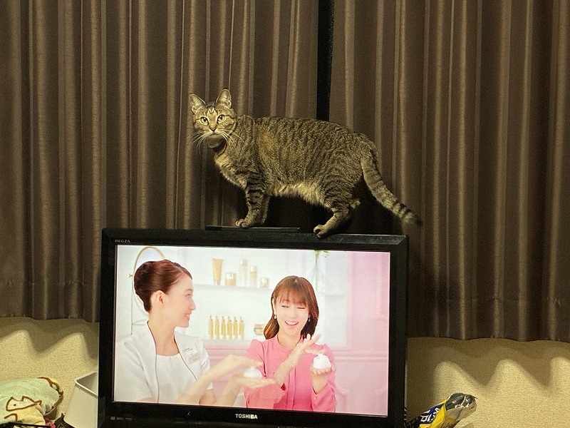 最近ネコが「窓を開けろ」とテレビの上から圧力をかけてくる。