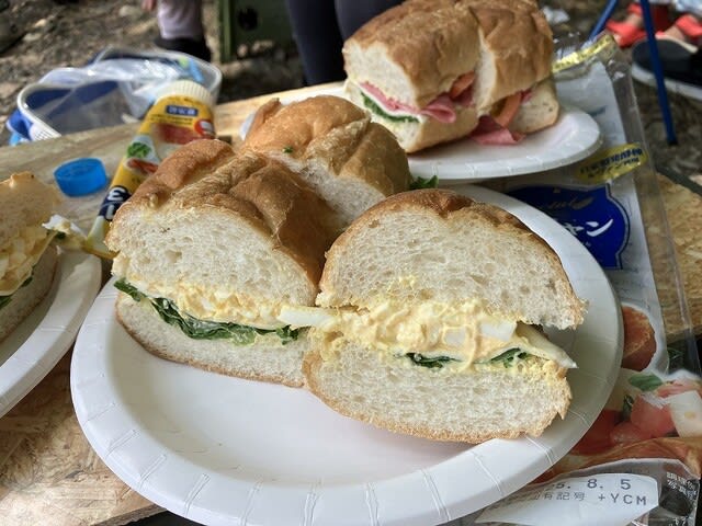 タープなどを設営しましてお昼ご飯担当者を待っておりますが、なかなか到着しない