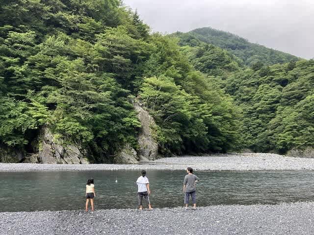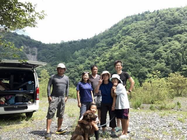 途中の吊り橋で豆アジ一家を見つけまして、一緒に現地入り
