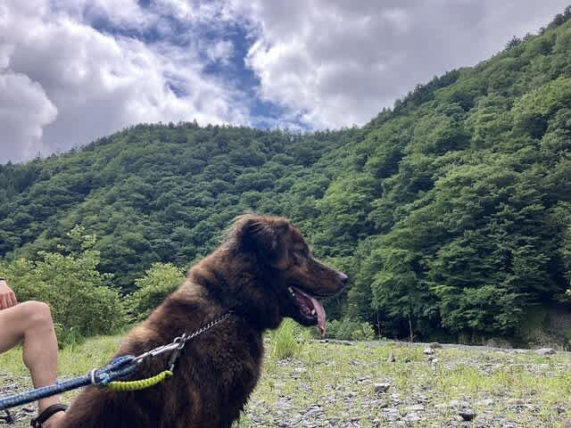 寝る前に花火をしていると、どこかでがけ崩れの音。カイが吠えます。