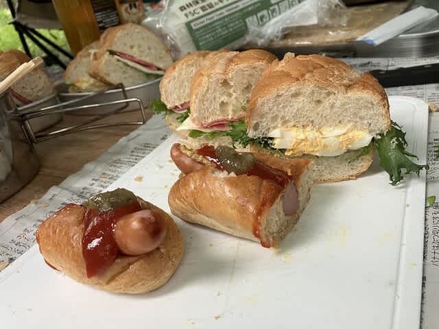 一通り遊んだら早い時間にお昼ご飯のホットドックを食べます。