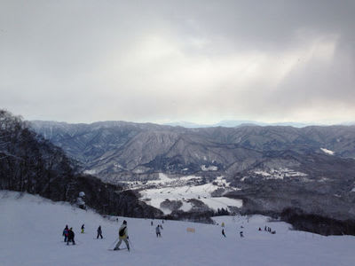 名物の「天狗落とし」からの「地獄谷」があるスーパージャイアントコースは雪崩の気配があってこの日は閉鎖されてました。