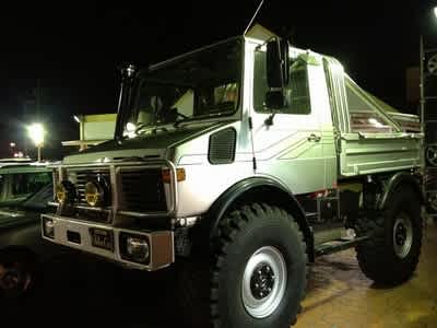 車をスタッドレスタイヤにしてきた。いつもお世話になっている車屋さんにウニモグが入ってた。