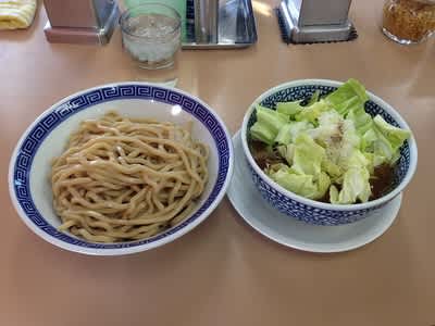 つけ麺中盛り野菜マシマシ。いろいろ食べてみてこれに落ち着いた。