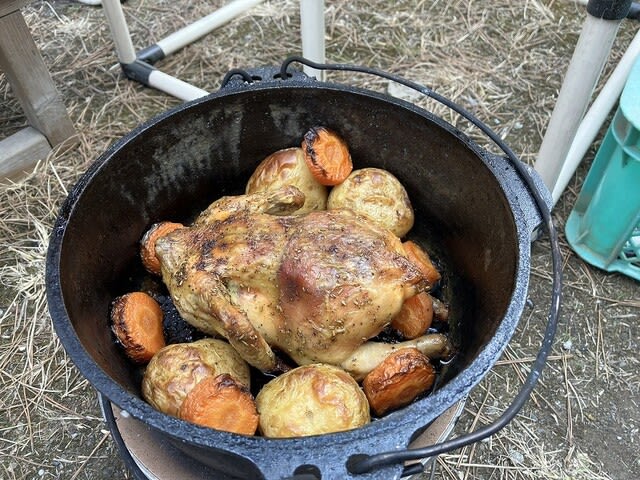晩御飯に鳥の丸焼きをいただきまして、きれいなストーブをべたべたにしてマシュマロを焼き、無事に帰宅。