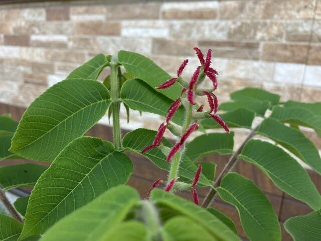 家のクルミの木に今年も花が咲いた