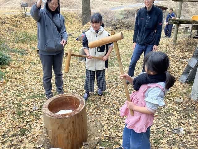 山小屋につきまして、クルミを割って食べたり、薪割りとか。
