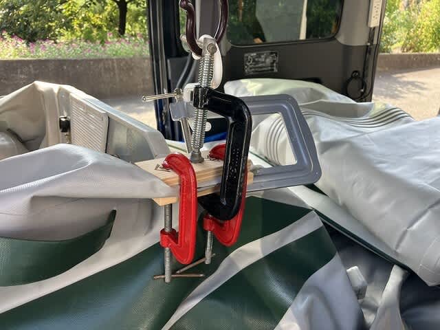 ボートの形と構造は、いわゆる「風船」なわけでして、膨らませた状態で、剥がれた部分を挟み込んで圧着というのができない。