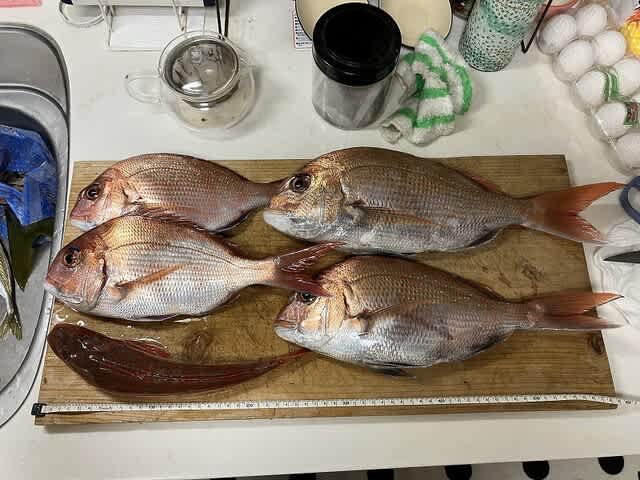 そこでなんとかお持ち帰りできるサイズのマダイを2枚釣り上げます。