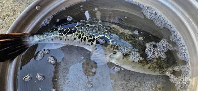 2キロクラスのサバフグ釣れる。サバフグは年を越してもいっぱいいる。
